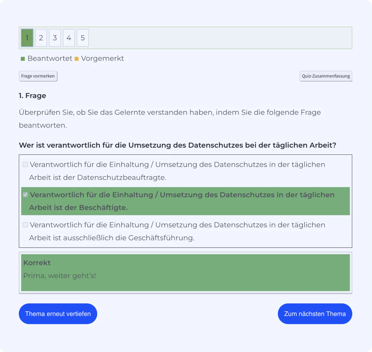 Die Online-Schulung kann aus beliebig vielen Fragen bestehen (ganz nach den Bedürfnissen Ihres Unternehmens).